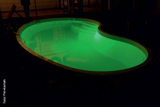 Dieser neuartige LED-Scheinwerfer wurde von Proviceman im Hinblick auf eine sehr hohe Lichtausbeute entwickelt. Mit dem „ProPool RGB 15 TL“ können Pools in den drei Grundfarben Rot, Grün und Blau großflächig ausgeleuchtet werden. Bei Schaltung aller drei Grundfarben strahlt er in weißem Licht. Herkömmliche 300W/12-V-Scheinwerfer können durch ihn ersetzt werden.