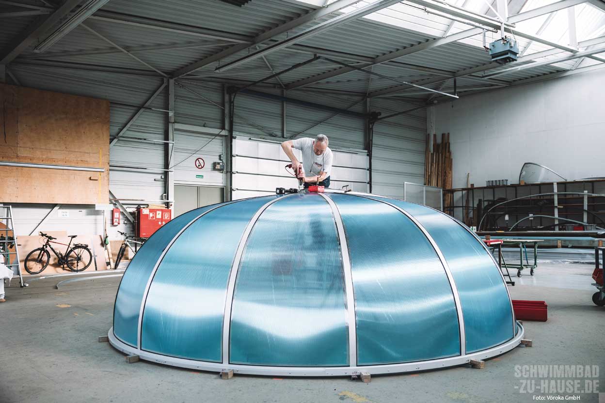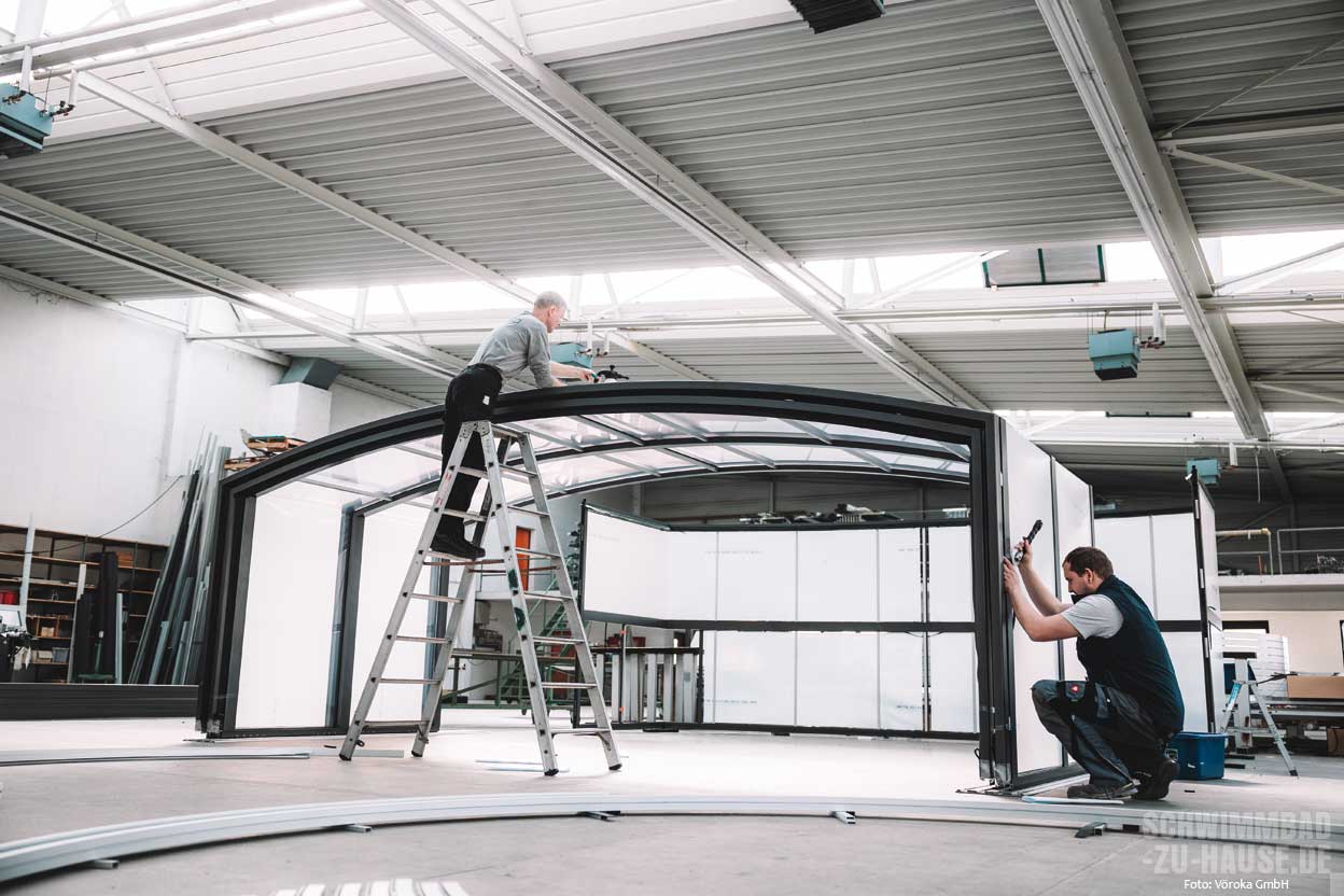 Im Laufe der Jahre setzte Vöroka seinen Innovationskurs fort und brachte die ersten teleskopisch beweglichen Schiebehallen für Privatpools auf den Markt. Diese Kombination aus Tradition und Innovation prägt bis heute die Unternehmensphilosophie. Die Überdachungen werden weiterhin mit Leidenschaft und hohem Qualitätsanspruch hergestellt. Dies erfolgt ausschließlich in Baden-Württemberg, einem Landstrich, der für seine Handwerkskunst und seine Tradition in der Metallverarbeitung bekannt ist. Modernste Betriebsausstattung trifft hier auf handwerkliches Können, um Produkte von höchster Qualität herzustellen. In den weitläufigen Produktionshallen in Eppingen, Baden-Württemberg, arbeiten hochqualifizierte Mitarbeiter Hand in Hand, um bis zu 35 Überdachungen pro Woche herzustellen. Von der Konzeption bis zur Fertigung wird jeder Schritt sorgfältig geplant und ausgeführt, um sicherzustellen, dass die Produkte höchsten Qualitätsstandards entsprechen.