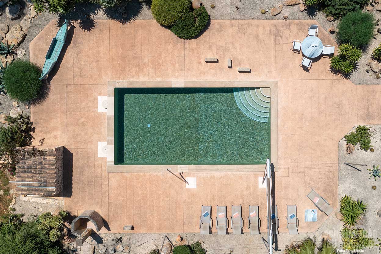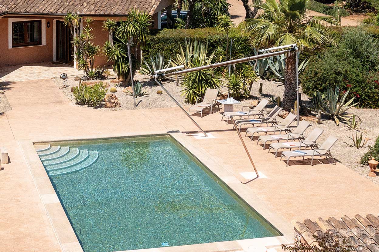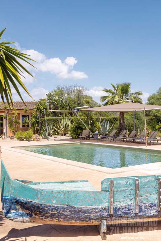 Reif für die Insel? Dann hätten wir einen heißen Geheimtipp für Sie: die authentische „Finca Casa Mas“. Hier kann man unter dem 48 Quadratmeter großen Sonnensegel entspannen, in den Pool springen oder den gepflegten, mediterran gestalteten Kakteengarten genießen. Der Pool mit mildem Salzwasser bietet an besonders heißen Tagen eine angenehme Abkühlung – und ist ohne Frage das absolute Highlight der Finca. Zuständig für die Planung und Umsetzung des jüngst sanierten Schwimmbads ist Frank Grigull. „Schon das ursprüngliche Becken wurde im Jahr 2002 von mir gebaut. Es musste nun, nach 20 Jahren, saniert werden“, verrät der Fachmann im Gespräch mit haus+wellness*.