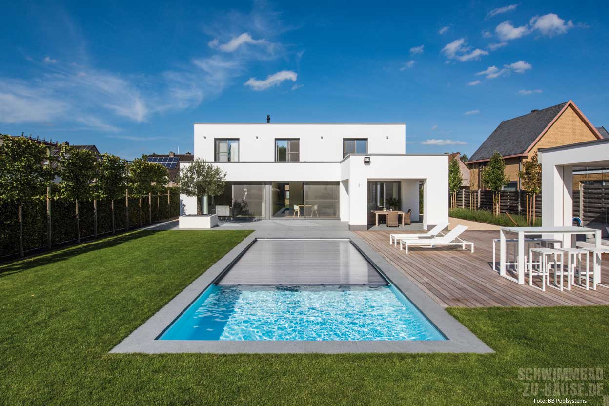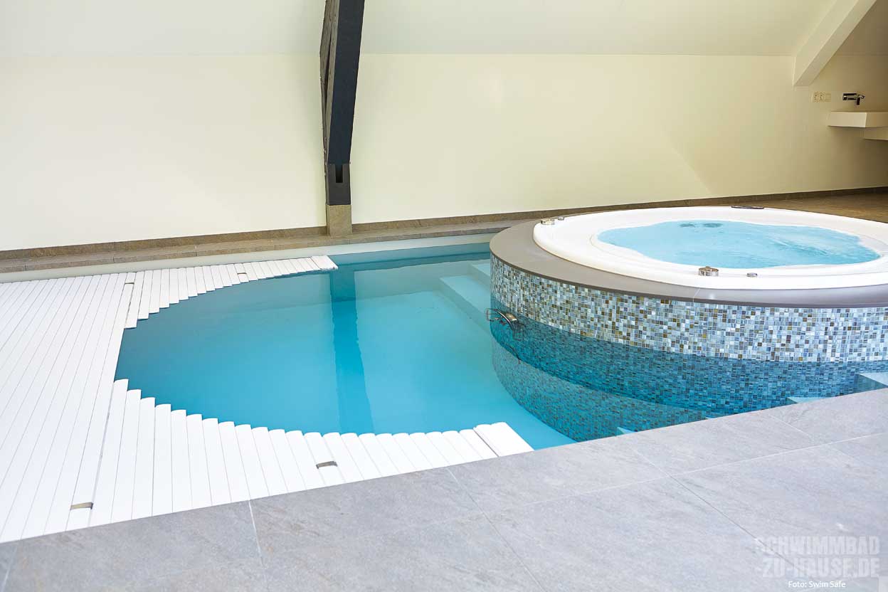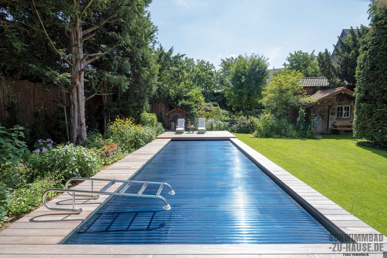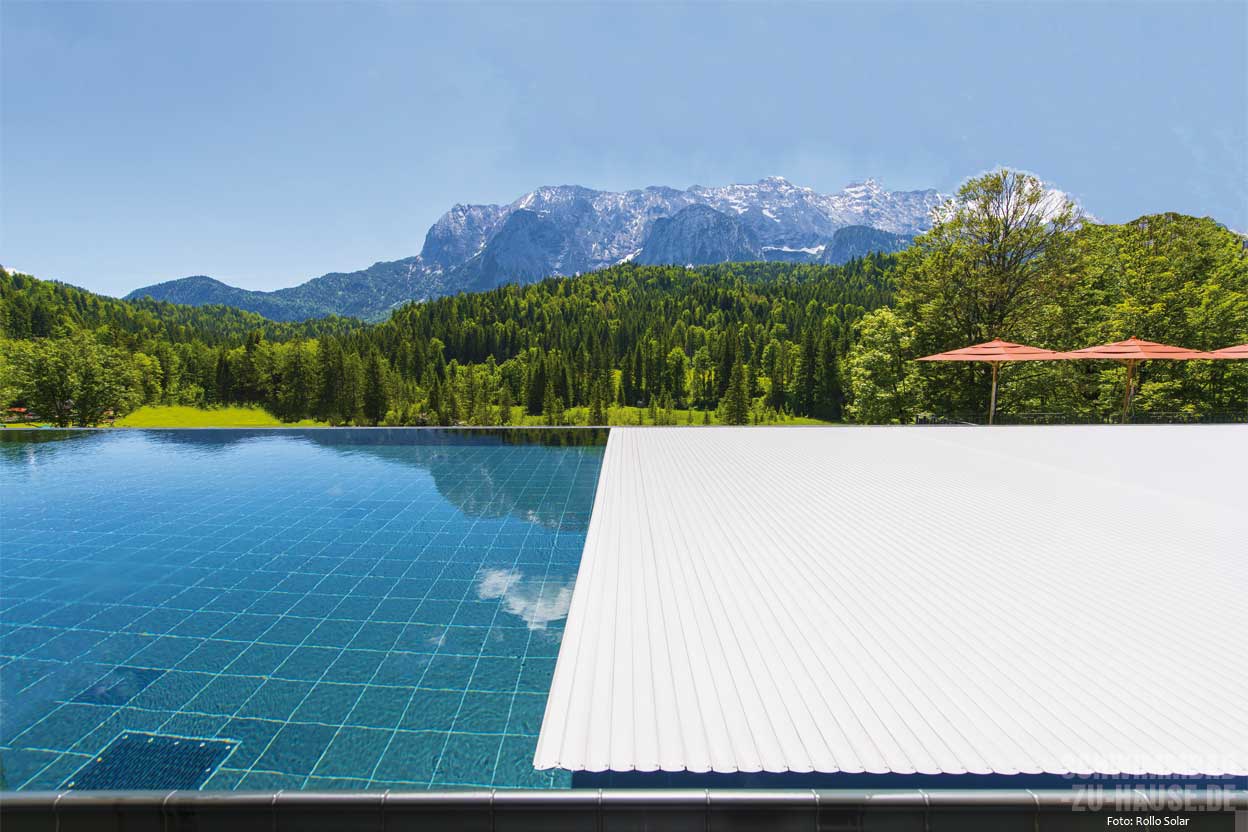 as Schwimmen im eigenen Pool macht ganz besonders Spaß, wenn das Wasser die persönliche Wohlfühltemperatur besitzt. Da diese in Deutschland meist höher ist als die Umgebungstemperatur der Außenluft, braucht es Wärme, die ins Wasser geleitet wird. Einmal im Wasser drin, geht es darum, die Wärme möglichst lange im Pool zu erhalten. Eine gute und relativ einfache Möglichkeit stellen Poolabdeckungen dar. Insbesondere bei Außenschwimmbecken – je nach Lage und Möglichkeit der Sonneneinstrahlung auch bei innenliegenden Pools – wärmt an sonnigen Tagen die eingestrahlte Sonnenenergie das Wasser im Becken auf. Wird das Becken nachts nicht abgedeckt, geht ein Großteil der Wärme in der kalten Nacht wieder verloren. Und auch untertags geht ein Teil der Wärme ohne Abdeckung schnell wieder verloren. Wird das Schwimmbecken hingegen nachts – und im Idealfall auch untertags, wenn niemand schwimmt oder badet – geschlossen, bleibt die eingestrahlte Wärme im Wasser. Hinzu kommt, dass mit einer Abdeckung weniger Wasser verdunstet, was sich ebenfalls positiv auf eine angenehm hohe Wassertemperatur auswirkt. Statt (mehrmals) wöchentlich die Verdunstungsverluste mit kaltem Frischwasser nachzufüllen und damit die Wassertemperatur nach unten zu drücken, wird das verdunstete Wasser von der Abdeckung zurückgehalten und bleibt im Pool. Im Indoorbereich bedeute eine geringere Verdunstung zudem weniger Gefahr für die Bausubstanz durch Feuchte. Alles in allem haben Poolabdeckungen zahlreiche Vorteile und führen dazu, dass die Badesaison oftmals früher begonnen werden kann und zugleich länger dauert. Bis zu drei Monate mehr Badevergnügen – ohne Zusatzheizung – sind durch eine Poolabdeckung möglich.