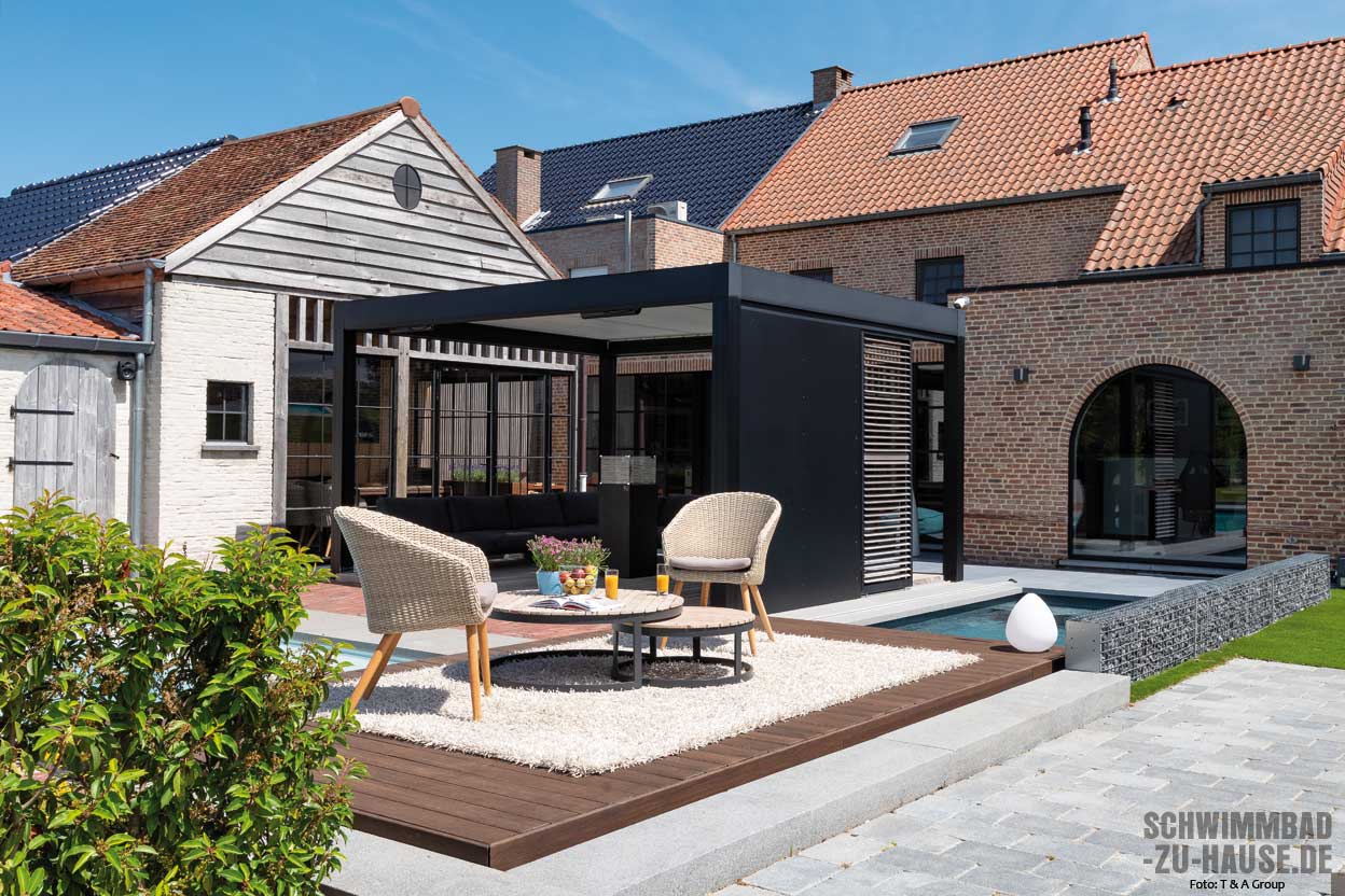 Noch mehr Sicherheit, meist jedoch auch Kosten und zugleich einen vergrößerten Außenbereich bedeuten Abdeckungen in Terrassenform und -ausführung. Ein beliebtes Modell der T & A Group ist beispielsweise die mobile Terrasse „Walu Deck“, die ideal für kleine Stadtgärten ist. Hinzu kommt der in den letzten Jahren beliebte bewegliche Boden „AquaFloor“ der T & A Group.
