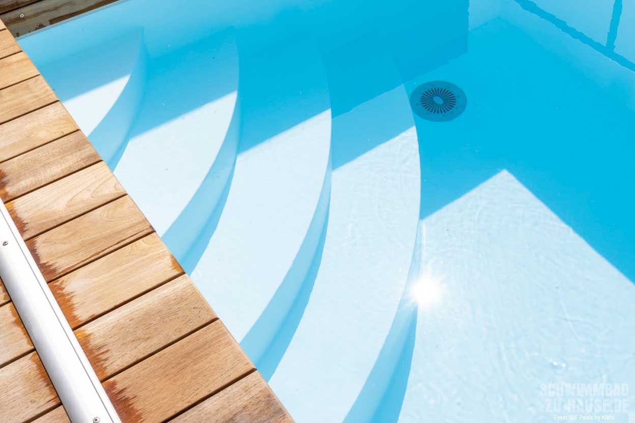 Bei der Sanierung ihres Schwimmbads waren der Bauherrin zwei Dinge besonders wichtig: ein reibungsloser Ablauf und gute Qualität. Ihre Vorstellungen wurden vom Architektenbüro Madeia in die Planung eingearbeitet, die Realisierung erfolgte durch die Schwimmbadexperten von SSF Pools by Klafs.