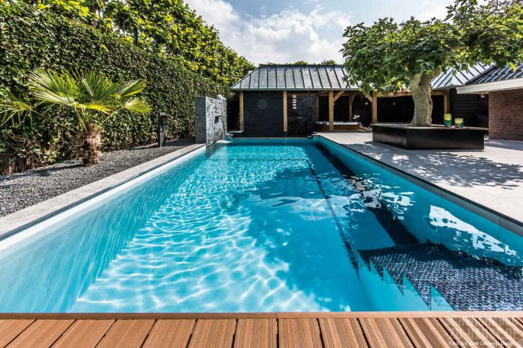 Swimming Pool, Sauna und Whirlpool. Dieser Garten vereint alles, was Körper und Seele in absolute Entspannung versetzt. Der mit dem Projekt beauftragte Architekt Eric Kant aus den Niederlanden zeigt, wie verschiedenste Elemente mit gestalterischem Geschick zu einem harmonischen Gesamtensemble zusammengeführt werden können. Der Trick: fließende Übergänge.