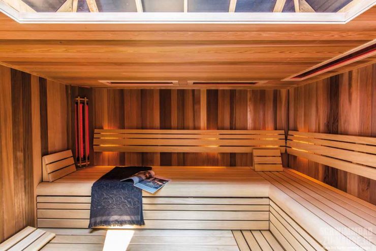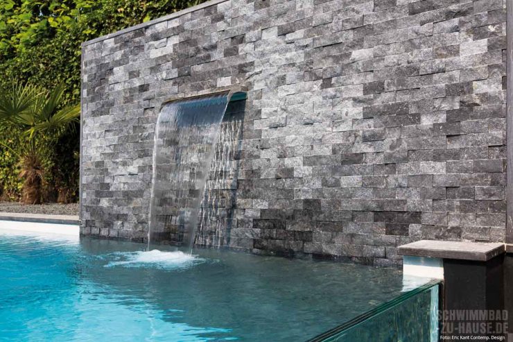 „Als die Bauherren den ersten Kontakt zu uns aufnahmen, hatten sie lediglich eine grobe Gestaltungsidee für ihr neues privates Spa-Paradies parat: Sie wünschten sich einen Rückzugsort, an dem völlige Ruhe und Entspannung herrschen“, verrät der Designer. Feststand, dass ein Schwimmbad den Mittelpunkt des Gartens bilden sollte. Zudem wünschte sich die Hausherrin ergänzend hierzu sanft wärmende Anwendungen wie beispielsweise eine Sauna und einen Whirlpool. In steter Absprache mit den Bauherrn erarbeiteten die Profis daraufhin einen Entwurf, der schließlich in die Realität umgesetzt wurde und schlussendlich alle Erwartungen übertraf. „Damit wir unsere eigene Oase – unabhängig von dem Wetter – so häufig wie möglich nutzen können, entschieden wir uns auf Anraten des Fachmanns für ein angrenzendes Poolhaus, das eine wärmende Feuerquelle beherbergt und durch ein schickes Ziegeldach vor Regen oder Schnee schützt“, erinnern sich die glücklichen Bauherren an die Planungsphase zurück.