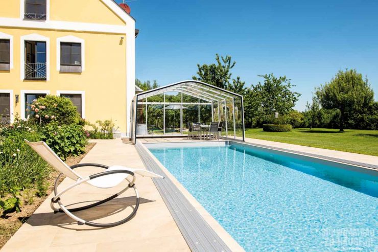 Seit 30 Jahren träumten sie vom eigenen Schwimmbad. Nun endlich wurde der Traum für die Bauherren aus Niederbayern Wirklichkeit. Im Garten des großzügigen Anwesens verwöhnt ein stattliches Schwimmbecken nun das ganze Jahr über mit Schwimm- und Badespaß für die ganze Familie. Oberste Prämisse des Projekts: 365 Tage im Jahr und bei jedem Wetter sollte das Wellnessparadies nutzbar sein. Die individuelle Poolüberdachung des Überdachungsspezialisten Vöroka garantiert genau dies – und überzeugt darüber hinaus mit ihrem ästhetischen Design.