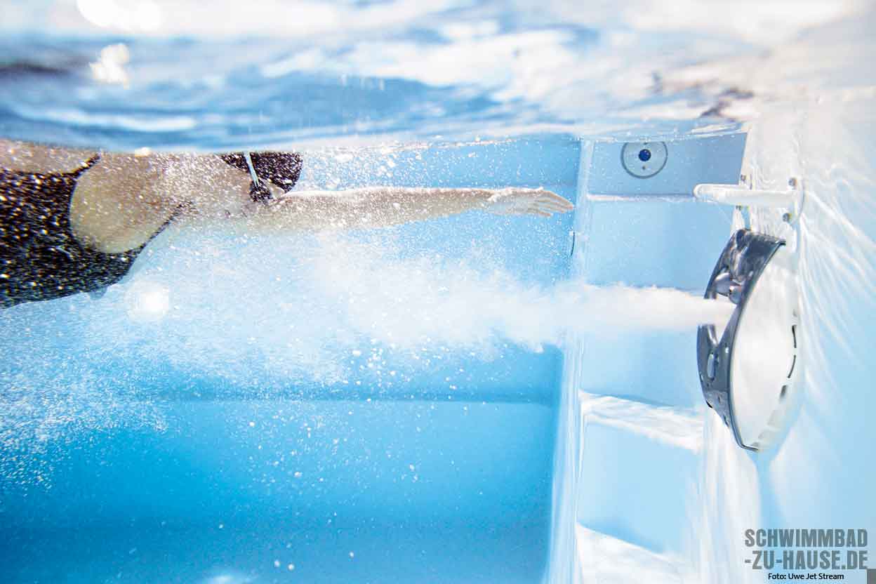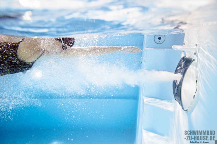 Voraussetzung für ein ausgiebiges Schwimmtraining ist der passende private Pool. Denn was gibt es Schöneres, als in der ruhigen Atmosphäre des eigenen Zuhauses seine Bahnen zu ziehen? So lange und vor allen Dingen, wann immer man möchte. Geheimwaffe für alle Schwimmfans: ist die Gegenstromanlage. Es gab Zeiten, in denen galt eine Gegenstromanlage als perfekte Lösung für kleine Schwimmbecken. Wer nur wenig Platz zur Verfügung hatte und dennoch nicht auf ein ausgiebiges Schwimmtraining verzichten wollte, der investierte in eine Gegenstromanlage. Heute haben sich die Ansprüche und Wünsche an eine solche Anlage merklich gewandelt: Eine Gegenstromanlage ist zum idealen sportlichen Tool des Schwimmbads avanciert und wird – unabhängig von der Beckengröße – immer beliebter. Was gleich geblieben ist, ist die technische Vorgehensweise dieser Anlage. Im Grunde ist eine Gegenstromanlage nämlich nichts anderes als eine überdimensionierte Einlaufdüse. Kompaktes Produkt: Von außen sieht man lediglich die Blende sowie die Düsen und die Schlitze, durch die das Wasser mit einer Pumpe angesaugt und anschließend wieder ins Becken eingeströmt wird. Unter großem Druck werden also Wasser und Luft in das Schwimmbad gepumpt. Der dadurch ausgelöste Wasserstrom wird daraufhin zum Gegenschwimmen genutzt. So ist ein Schwimmen auf der Stelle möglich.