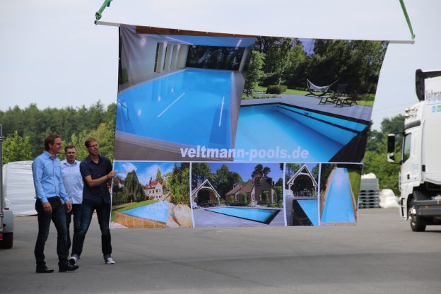 Am 11.06.2016 eröffneten die Pool-Profis von Veltmann Fertigschwimmbecken ihre neue Ausstellung. Branchen- und Pressevertreter waren eingeladen bei Kaffee und Kuchen das neue Gelände in Emsbüren zu besichtigen.