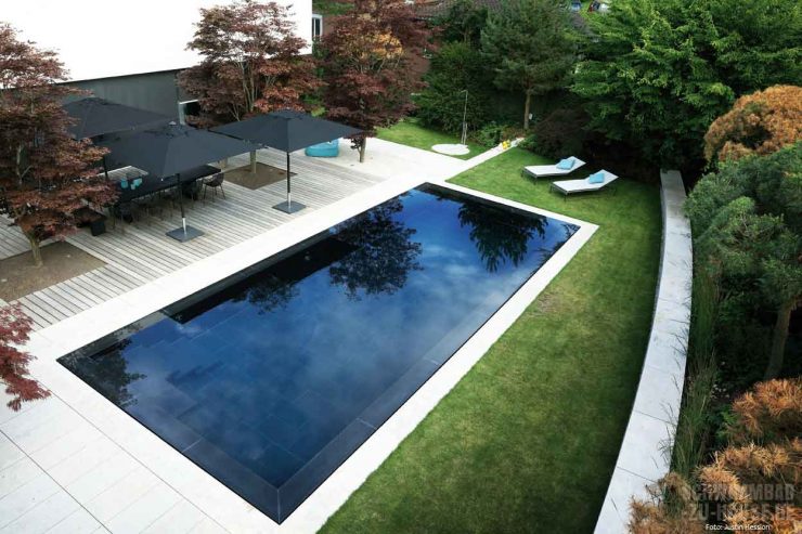 Neben dem sportlichen Aspekt des Ausdauerschwimmens mit einer kraftvollen Gegenstromanlage und dem hohen Erholungsfaktor stellten die Bauherren vor allen Dingen große Anforderungen an die designorientierte Optik des neuen Gartenpools. „Das geradlinige Becken sollte sich harmonisch in das Ensemble aus Wohnhaus und Garten einfügen und gleichzeitig durch einzigartige Features faszinieren“, fasst Erich Woodtli, Geschäftsführer des mit der Planung und Umsetzung dieses Poolprojekts beauftragten Unternehmens Woodtli Schwimmbadtechnik, die Wünsche der Schweizer Familie zusammen. Eine Hochstufung des Pools sollte darüber hinaus die Sicht durch das Haus auf den See freigeben. In enger Zusammenarbeit und regem Austausch zwischen den Bauherren, dem Architektenteam von Entrée, den Landschaftsarchitekten Latz & Partner aus München und den Schwimmbadprofis entstand so ein edel anmutender Gartenpool der Superlative.