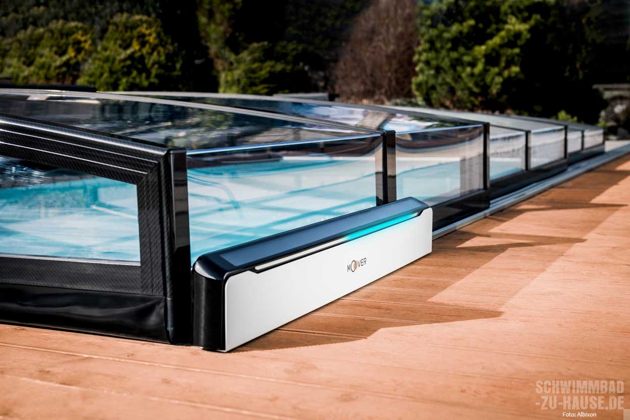 Viele Poolüberdachungen sind aber schon mit motorisierten Systemen ausgestattet, die es ermöglichen, die Überdachung mit einem Knopfdruck oder einer Fernbedienung zu öffnen und zu schließen. Außerdem können Zeitschaltuhren, Sensoren, oder eine Fernsteuerung in Kombination mit der motorisierten Version gekoppelt werden, um den Komfort zu steigern.