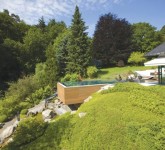 Familie Janda wollte ein Schwimmbad in ihrem Garten. Möglichst grosszügig sollte es sein. Doch wie lässt sich ein solcher Wunsch mit einem Grundstück in starker Hanglage vereinbaren? Es fand sich eine passende Lösung.