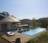 Um dem Wunsch nach einem geräumigen Schwimmbecken nachkommen zu können, wurde es kurzerhand über den Hang hinaus gebaut. Die Berechnung der Statik des überhängenden Pools stellte für den Planer eine besondere Aufgabe dar. Als die Statiker dann das Okay gaben, konnte losgelegt werden und es entstand ein stilvoller Spaß-, Fitness- und Entspannungsbereich. Das Edelstahlbecken trifft den?Trend der Zeit und ist mit neuester Technik gespickt, die von der Firma Ulltech aus Aschaffenburg fachgerecht installiert wurde. Für die Wasseraufbereitung fiel die Wahl auf eine vollautomatische Anlage des Wassertechnikspezialisten Ospa – sowohl für den Außen-Schwimmbad als auch für den Whirlpool im Haus.