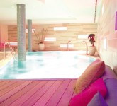 Der Poolbereich des 600 Quadratmeter großen Vitality Spas versprüht trotz reduzierter Gestaltung einen gemütlichen Charme. Moderne LED-Lichttechnik hüllt ihn in ein wechselndes Farbenspiel. Der Pool ist mit einer Gegenstromanlage, Sprudelliegen und zwei Schwallbrausen ausgestattet und kommt damit sowohl dem Wunsch nach sportlicher Betätigung als auch dem der umfassenden Entspannung nach. Asiatische Dekoelemente verleihen dem Vitality Spa einen Hauch fernöstlichen Flairs, das sich in den Behandlungsräumen noch stärker ausgeprägt wiederfindet. Dort werden die Massagen und Schönheitsanwendungen durchgeführt, karibische Kosmetikprodukte von Ligne St Barth und das Anti-Aging-Programm von Transvital aus der Schweiz kommen dabei zum Einsatz. Eine Saunalandschaft fehlt in diesem Spa natürlich auch nicht – sie entspannt mit Finnischer Sauna, Inhalations- und Dampfbädern, einem Rhassoulbad, einem Hamam und Erlebnisduschen. Wer es doch lieber etwas aktiver hat – kein Problem, im Fitnessbereich stehen auch diverse Cardio- und Kraftgeräte bereit.
