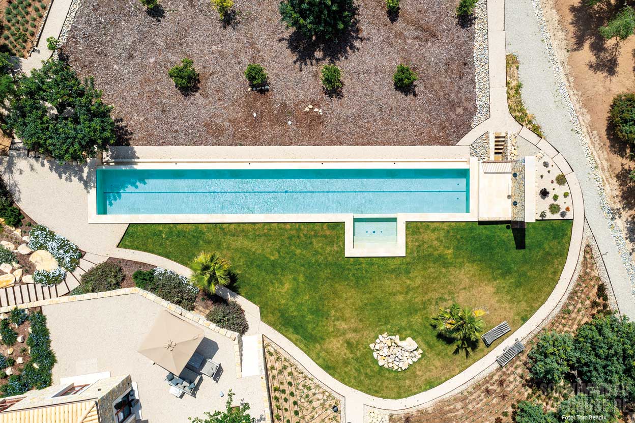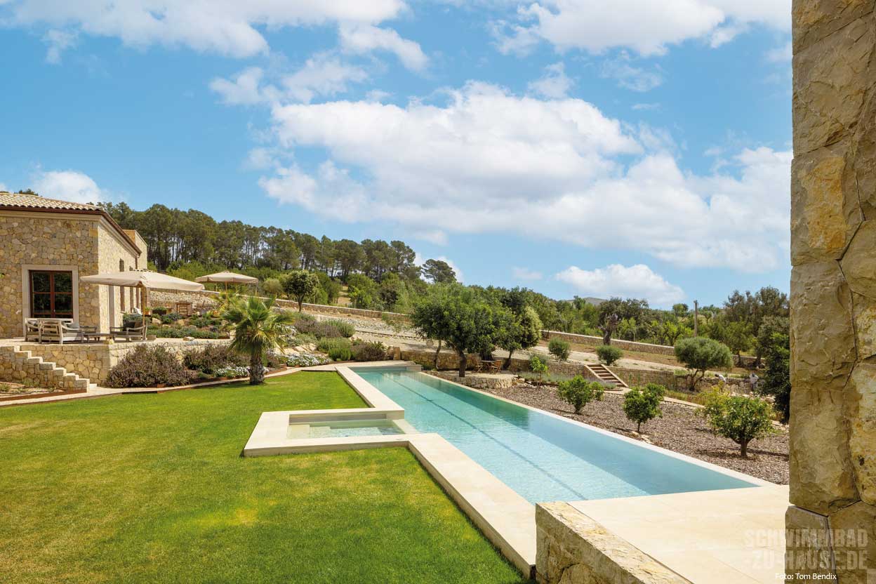 Seit 1990 träumten Andreas Schröder und seine Frau von einer Finca mit einem Schwimmbecken. „Meine Frau und ich waren seit diesem Zeitpunkt Mallorcafans und als ambitionierte Triathleten sportlich sehr aktiv. Sie ist als Schwimmerin groß geworden und somit bestand und besteht bis heute eine Vorliebe zum Schwimmsport und unserem Hobby Triathlon“, erzählt Andreas. Mit der Geburt ihrer drei Kinder, die ebenfalls zu Triathleten heranwuchsen, reifte der Plan, einen Pool zu bauen, der sowohl zum Training als auch zum Entspannen geeignet ist.