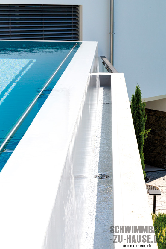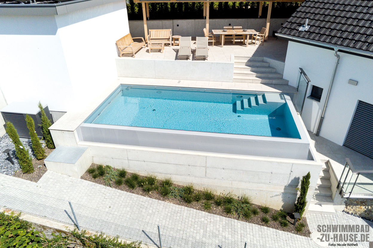 Dabei ist natürlich klar, dass ein solch spektakulärer Bau nicht ganz einfach zu realisieren ist. Gerade die Hanglage des Anwesens und der felsige Hintergrund, der eine besonders stabile Lösung in Sachen Statik erforderte, stellten den Architekten und die Schwimmbadbauer der Vivell AG vor eine Herausforderung. Doch getreu dem Motto „Es gibt keine Probleme, nur Lösungen“, konnte diese knifflige Situation von den erfahrenen Experten vor Ort souverän gemeistert werden.