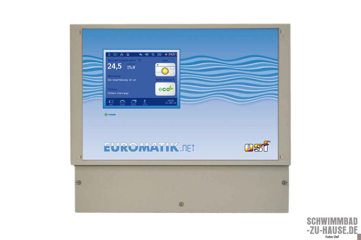 Modernste Mess- und Regelanlagen stehen nicht nur für Wasserqualität, Badespaß und Komfort, sondern auch für Energieeffizienz. Der „Pool-Controller“ von Compass Pools sorgt dafür, dass die Pooltechnik ineinandergreift. Er regelt viele Funktionen und Features gebündelt auf einmal. Die Heizung im Pool wird zum Beispiel laufend kontrolliert: Luftwärmepumpe, Wärmetauscher und Co. werden geregelt – und zwar so, dass die Wassertemperatur konstant bleibt, ohne lange Aufheizzeiten und unnötigen Energieverbrauch. Und auch die „Euromatik.net“ von osf Hansjürgen Meier wird dem Anspruch gerecht, Energie einzusparen. Die „Euromatik.net“ ist in der Lage, energieeffiziente Umwälzpumpen mit elektronisch kommutierten Motoren und hohem Wirkungsgrad zu steuern. Dabei schaltet die sie die Drehzahl der Umwälzpumpe bedarfsgerecht und passt sie den jeweiligen Betriebszuständen an.