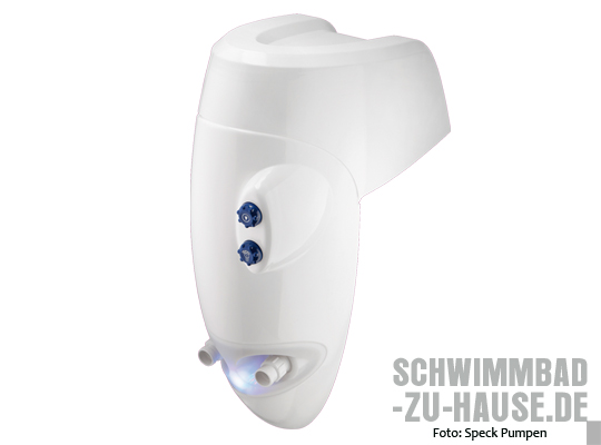 „Badu Jet“ heißen die stylishen Einhänge-Gegenstromanlagen von Speck Pumpen. Die Technikexperten haben zusammen mit kreativen Produktdesignern ein attraktives Äußeres für die Gegenstromanlage, die einfach am Beckenrand eingehängt werden kann, entwickelt. Im Bild ist die Ausführung „Badu Jet Stella“, mit schwenkbaren und regulierbaren Düsen. Der Volumenstrom ist an den Düsen regulierbar, Werkstoffeigenschaften und Handhabung der Gegenstromanlage entsprechen dabei dem neuesten Stand der Technik. Zusätzlich gibt es weißes oder mehrfarbiges Licht an der Front der modernen Schwimmhilfe.