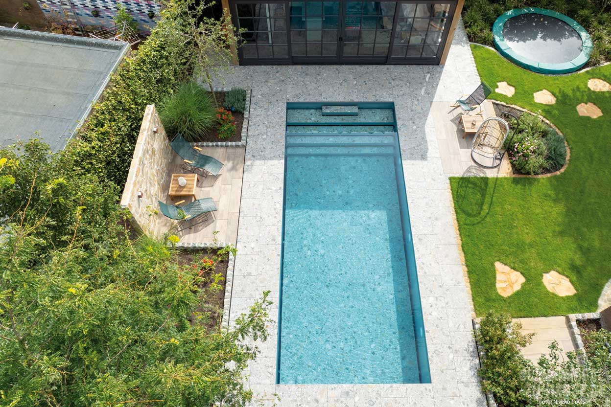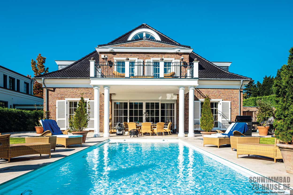 Die zweite Variante ist rundum begehbar und jederzeit revisionsfähig, was bedeutet, dass sie leicht zugänglich sind, auch für spätere Wartungs- oder Nachrüstungsarbeiten. Diese Bauweise ermöglicht es, den Platz für die Technik zu maximieren und aufwendige Zwischendecke zu vermeiden. Ein weiterer Vorteil ist die Flexibilität bei der Platzierung des Pools.