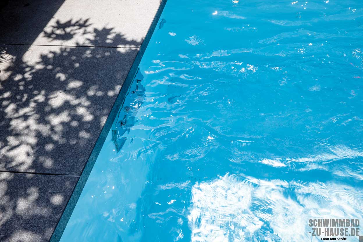 Das edle Erscheinungsbild des Objekts macht es zum idealen Mittelpunkt für erholsame Stunden und gesellige Zusammenkünfte im Sommer. „Wir sind sehr glücklich mit dem Ergebnis. Der Pool spiegelt die sorgfältige Planung und das hohe Maß an Fachkenntnissen wider, die in die Umsetzung eingeflossen sind“, schwärmt der Bauherr. Die durchdachte Gestaltung des Pools sorgt aber nicht nur für Entspannungsmomente – für die Bauherren steht vor allem das Schwimmen im Vordergrund. Das Schwimmbecken mit eingebauter Gegenstromanlage bietet eine ausgezeichnete Möglichkeit für sportliche Aktivitäten und intensives Fitnesstraining. Hier kann die Familie ab sofort Kraft und Ausdauer verbessern, während sie gegen den Strom schwimmen. Eine Außendusche neben dem Pool vervollständigt das ganzheitliche Konzept der Anlage und bietet eine komfortable Möglichkeit zum Abduschen vor und nach dem Schwimmen.