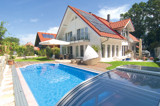 Deswegen warten mittlerweile jede Menge Produkte, um den Betrieb einer Schwimmhalle kosteneffizienter zu gestalten. Da gibt es beispielsweise die Wärmepumpe – eine immer beliebter werdende Form der Poolheizung. Energieersparnis: zwischen 75 und 85 Prozent gegenüber einer herkömmlichen Elektroheizung. Die Wärmepumpe für den Pool funktioniert wie ein Kühlschrank und sieht aus wie eine Klimaanlage. Sie entzieht der Außenluft Wärme, die dann – reduziert erklärt – mittels Wärmetauscher auf das Schwimmbadwasser übertragen wird. Eine weitere Möglichkeit, einen messbar hohen Energieaufwand zu reduzieren, ist eine Rollladenabdeckung. Als Ober- oder Unterfluranlage (über oder unter dem Wasserspiegel) am oder im Schwimmbad angebracht, bedeckt eine Rollladenabdeckung die komplette Beckenoberfläche und verhindert so ein Entweichen des Wasserdampfes. Die Verdunstung und die damit verbundene Auskühlung wird somit vermindert, die Energieeinsparung liegt bei bis zu 80 Prozent. Eine Thermoabdeckung funktioniert ähnlich, nur hier besteht die Abdeckung aus einer vollflächigen PE- oder PVC-Plane. Eine Lüftungsanlage mit dreistufiger Wärmerückgewinnung ist nicht nur aufgrund ihrer Energie einsparenden Wirkungsweise ein Muss für jede Schwimmhalle. Mehr Informationen dazu und zu Entfeuchtungsanlagen allgemein, finden Sie hier.