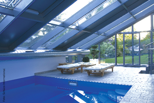 Das nächste Produkt auf der Liste ist ein Blockheizkraftwerk. Die Kleinkraftwerke erzeugen nicht nur Wärme für Warmwasser und Heizung, sondern auch Strom für den Eigenbedarf und zum Einspeisen ins Netz. Besonders interessant ist diese Heizweise also bei einer hohen Anzahl an Betriebsstunden – beispielsweise bei der Versorgung eines Schwimmbads. Ein kleines Produkt mit großem Einsparungpotenzial sind LED-Leuchten für den Pool (mehr Informationen: Artikel „Nachthell erleuchtet“). Auch Wärmeschutzglas für den Fensterbereich kann eine erhebliche Energieeinsparung bedeuten. Es sorgt dafür, dass der meiste Teil der Wärme im Raum erhalten bleibt. Last but not least gibt es noch die Becken-Wärmedämmung, bei einem gut isolierten Becken bleibt die Wärme im Wasser. Mit den folgenden zehn Tipps erreichen Sie Niedrigenergie für Ihre Schwimmhalle im Nu.