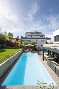 In einer Welt, die oft von Alltagsstress geprägt ist, ist der Außenpool einer Stuttgarter Familie ein Ort des gemütlichen Beisammenseins. Das 320 x 750 Zentimeter große Schwimmbecken von SSF Pools by Klafs ist die perfekte Ergänzung für ihren Garten.