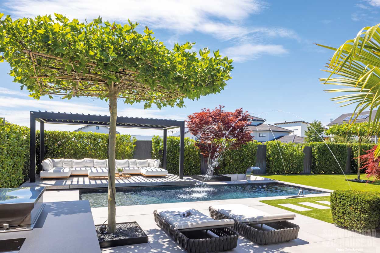 Heute nehmen wir Sie mit in einen traumhaften Garten, in dem sich ein wunderschöner Pool befindet. Für die Familie war es schon immer ein Traum, einen eigenen Pool in den heimischen Grünflächen zu besitzen, und 2021 wurde dieser endlich wahr. Die Fläche ist nicht allzu groß, aber die Familie wollte den Außenbereich so gestalten, dass sie hier eine Art erweiterten Lebensraum im Freien haben.