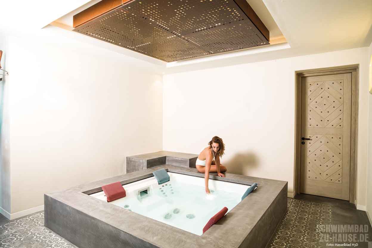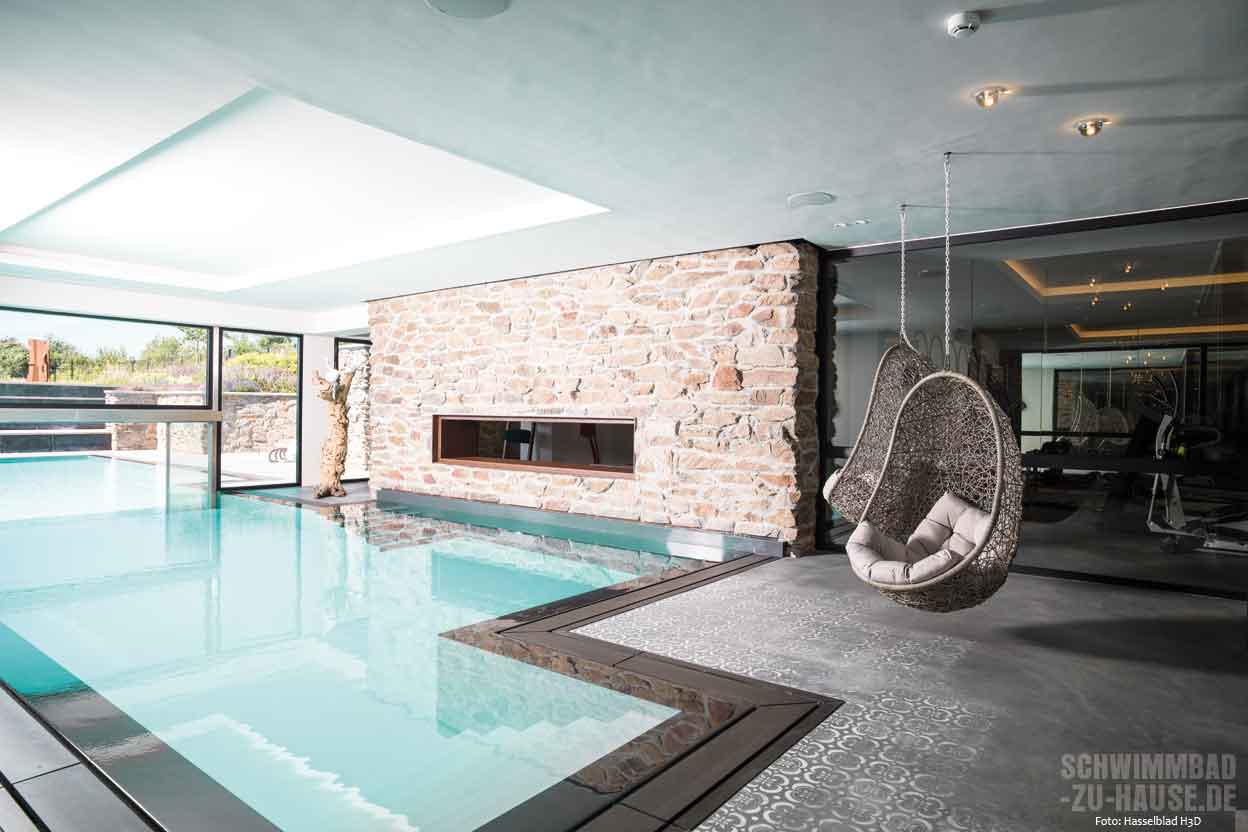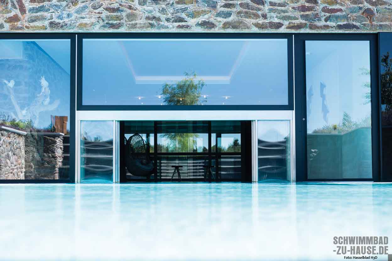 Sportliches Schwimmen mit Gegenstromanlage, Relaxen am Pool, der mit einem eleganten Indoor-Bereich wetterunabhängigen Badespaß garantiert, entspannende Hydromassagen im Whirlpool oder gesundes Schwitzen in der Sauna: Hier ist alles möglich. Da dem Bauherrn außerdem Langlebigkeit sowie beste Luft- und Wasserqualität bei möglichst wenig Chemie im Haus wichtig waren, wandte er sich an ein Unternehmen, das sich auf exklusive Wellnesskonzepte unter Verwendung hochwertiger Technik und Materialien spezialisiert hat.