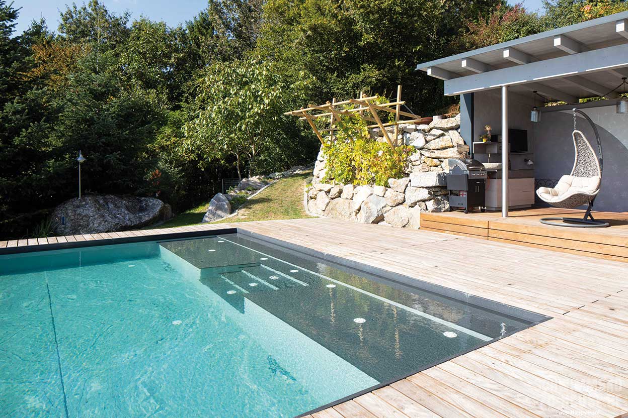 Badespaß für die ganze Familie, attraktiver Blickfang im Garten und persönliche Wellnessoase zum Entspannen: Im oberösterreichischen Bad Kreuzen haben die Schwimmbadprofis von Happy-Pool alle Wünsche der Familie Payreder erfüllt. Dank des Smart-Cleaning-Systems reinigt sich das exklusive Folienbecken quasi selbst, und es bleibt noch mehr Zeit zum Genießen.