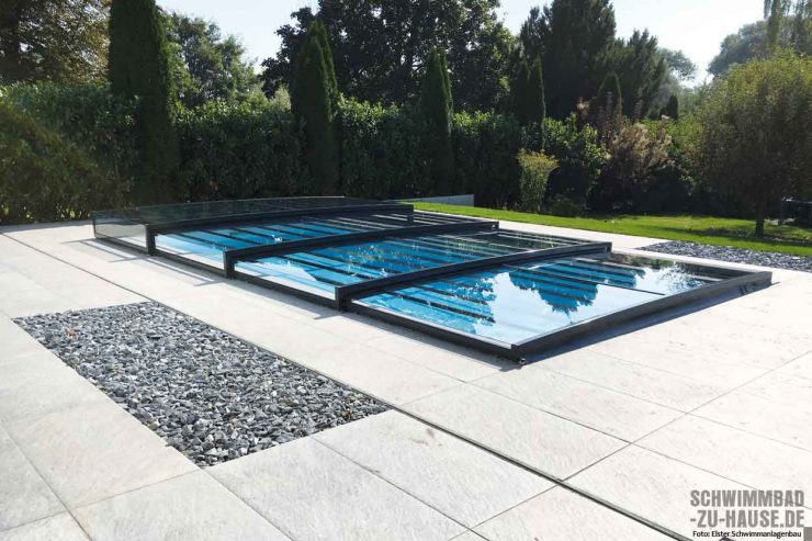 Bereits seit längerer Zeit steht neben der Funktion auch vermehrt die Optik im Vordergrund, wenn es um die Wahl einer passenden Poolüberdachung geht. Der Garten, der immer mehr zum Outdoor-Wohnzimmer wird, soll auch in Sachen Design und Aussehen gefallen. So tragen zeitgemäße Formen dazu bei, dass sich der Pool mitsamt Überdachung harmonisch in das Gesamtbild integriert. Moderne Überdachungen mit geraden, flachen Elementen, deren Laufschienen häufig dezent und damit ästhetisch verbaut wurden, liegen klar im Trend.
