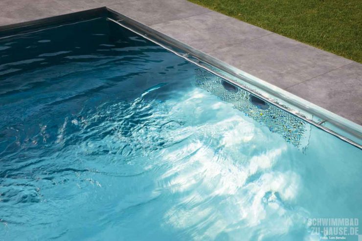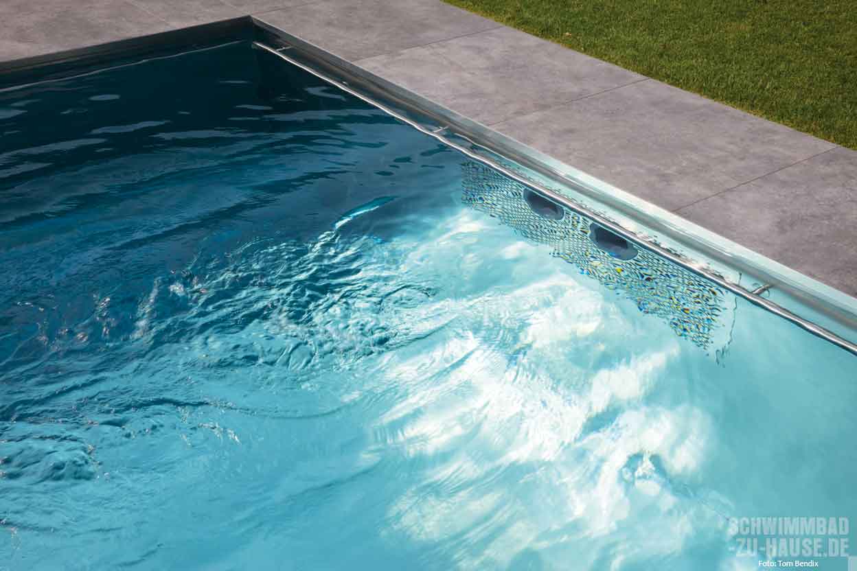 Mit der Planung und Umsetzung des neuen Edelstahlpools beauftragten die belgischen Bauherren das erfahrene Team von Inox Zwembaden Gydion. „Diese hatten bereits das Badeparadies unserer Freunde zur vollsten Zufriedenheit und ohne Probleme realisiert“, begründet Wendy ihre Wahl. Neben dem Material Edelstahl stand ein anderer Aspekt ganz oben auf der Wunschliste. Der Bauherr, der als selbstständiger Unternehmer sehr viel unterwegs ist und in jungen Jahren leidenschaftlicher Schwimmer war, möchte diesen aktiven Lifestyle von damals nun wieder aufleben lassen – und das zu Hause. Eine kraftvolle Gegenstromanlage musste also her, die das ausdauernde Bahnenziehen im vier Meter breiten und zehn Meter langen Pool professionell werden ließ.
