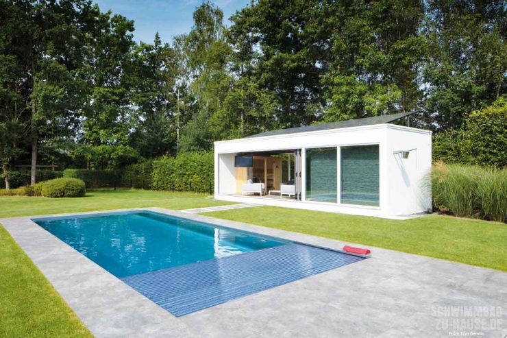 Damit Wendy Geens, ihr Mann und die zwei Kinder auch im Winter in den Genuss der privaten Wellnessoase kommen, installierten die Schwimmbad-Profis eine spezielle All-Seasons-Wärmepumpe. Gemeinsam mit einer automatischen Abdeckung aus Solarlamellen, der Filterpumpe, die hinsichtlich ihrer Geschwindigkeit variabel ist, der Beckenisolierung mit sieben Zentimeter dickem Schaum und nicht zuletzt der Solaranlage auf dem Wohnhaus ist das Projekt darüber hinaus sehr nachhaltig und spart Energiekosten.