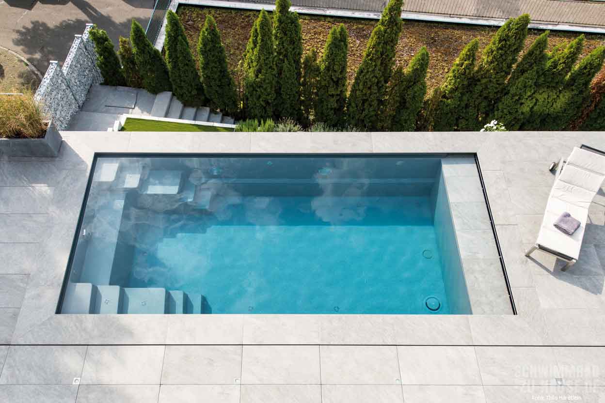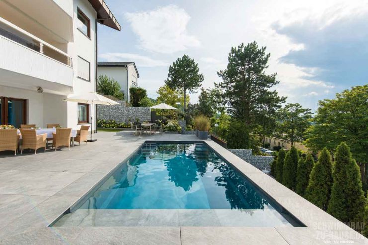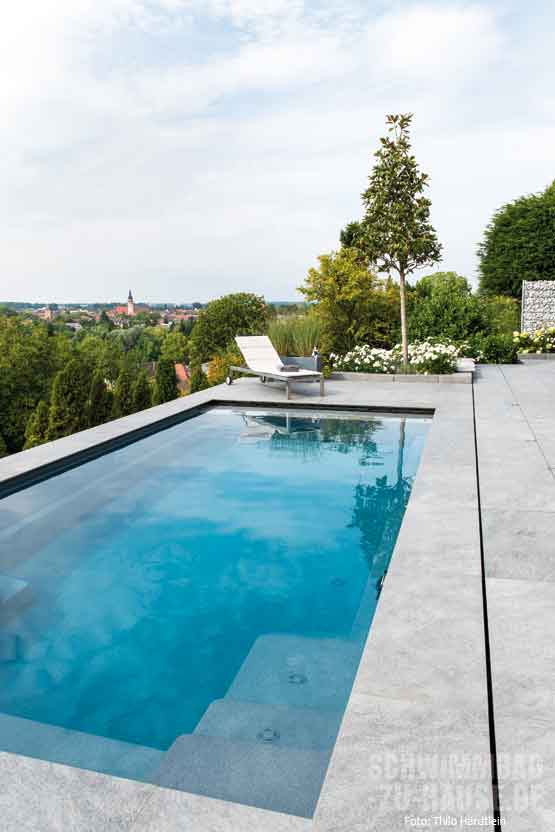 Die Liebe zum Wasser war der Anstoß für diesen Wellnessgarten, dessen Herzstück das puristische, von zeitloseleganten Betonsteinen eingefasste Schwimmbad ist. Absolutes Must-have in diesem Kontext: hochwertige Technik, Energieeffizienz, die richtige Beckengröße, eine ansprechende Optik und ein möglichst geringer Pflegeaufwand.
