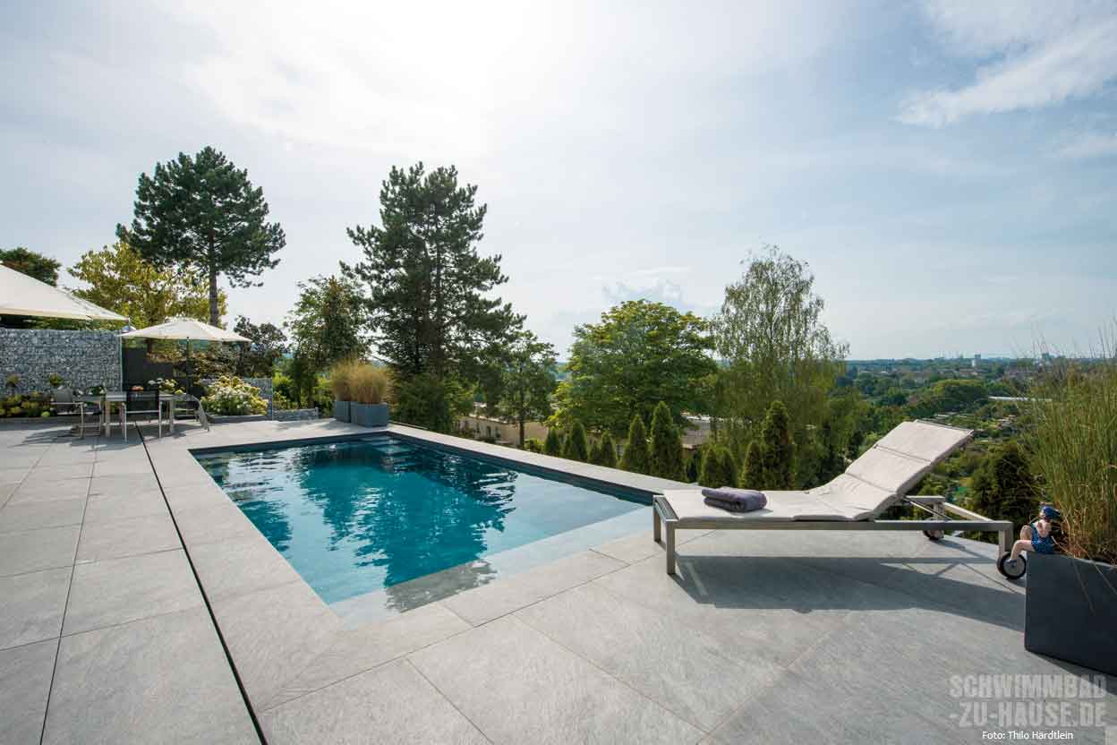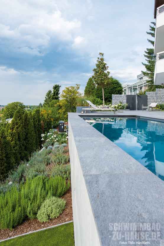 Bautechnisch war der Pool eine Herausforderung: An der vorderen Grundstückskante hangabwärts gelegen, mussten eine Stützmauer und eine Wanne vom Profiteam betoniert werden, um das Becken stabil einbauen zu können. Hier – wie auch in der gesamten Anlage – kam die Kompetenz von Gartenszenario Living Pool GmbH in vollem Maße zum Tragen. „Es gab bei dem gesamten Pool-Projekt keinen einzigen Punkt, an dem etwas hätte noch besser laufen können. Wir sind sehr zufrieden“, schwärmt das Ehepaar. Besonders die hohe Kompetenz der Schwimmbadbauer hat in diesem Kontext beeindruckt: „Die Präsentation der Planungskonzepte und auch die nachfolgende Kommunikation bezüglich Detailfragen waren überzeugend und schlüssig. Man merkt, die Profis stehen zu hundert Prozent hinter ihren Produkten.“ Die Bauherren freuen sich schon jetzt auf den nächsten Sommer und die neue Badesaison!
