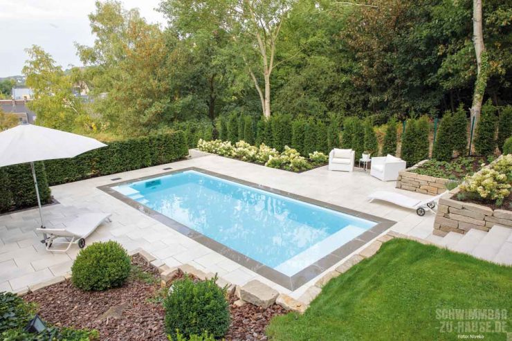 Mit diesen konkreten Vorstellungen im Gepäck machte sich Familie Koch auf die Suche nach einem erfahrenen Poolprofi, der sowohl die fachliche Planung als auch die Umsetzung des Projekts zuverlässig übernehmen würde. Zuvor wollte man jedoch die Frage nach dem richtigen Becken klären. Denn ohne Frage ist das Schwimmbecken Herzstück und damit wichtigstes Element eines Poolprojekts. „Wir erzählten einem guten Freund von unserem Traum. Er hatte bereits einen Pool und war mit seinem Becken von Niveko Pools überaus zufrieden“, erinnert sich Herr Koch. Das Design begeisterte auf den ersten Blick. Über das Internet stieß die Familie auf das Fachunternehmen Pools & Ponds, das Bezirksvertreter und Profipartner des Beckenherstellers Niveko Pools ist. Gemeinsam mit dem Schwimmbadbauer Herrn Becker entstand so in der darauf folgenden Zeit eine Wellnessoase der ganz besonderen Art.