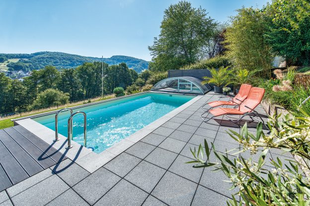 Jetzt ist das Familienglück perfekt, denn der neue Pool ist nicht nur Garant für Abkühlung an heißen Tagen, sondern auch das Zentrum des neuen Wohnzimmers, das kurzerhand zeitweise in den Garten verlegt wurde. Übrigens: Laut Auskunft der Bauherren dürfen im neuen Becken alle baden, die beim Bau geholfen haben.