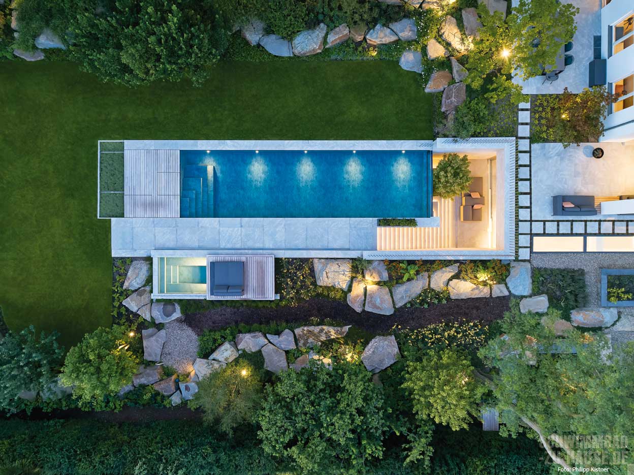 Diese außergewöhnliche Wellness-Anlage wurde in enger Zusammenarbeit mit dem Architekten Benjamin von Pidoll und der Belka GmbH entwickelt. Der Auftraggeber fand den Weg zu diesem ambitionierten Projekt über seinen Architekten, der mit einem visionären Plan zur Umgestaltung des Hauses und zur Schaffung eines einladenden Gartens aufwartete. Die Wünsche des Auftraggebers waren klar: Eine Verschmelzung von Innen- und Außenräumen und die Schaffung von vielfältigen Nutzungsmöglichkeiten für jedes Familienmitglied. Vom Poolbereich bis zur Innengestaltung war jeder Aspekt darauf ausgerichtet, den Bewohnern ein Höchstmaß an Komfort und Wohlbefinden zu bieten.