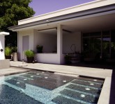 Der Oberösterreicher wollte variantenreiche Entspannung zu Hause erleben und schaffte sich zu diesem Zweck noch eine Sauna und ein Dampfbad für den Innenraum an und platzierte einen Außenwhirlpool auf seiner Terrasse. „Der Schwimmbad-Bau war im Grunde sehr einfach. Es wurden für aufwendige Teile wie die Treppe mit Liegefläche Fertigteile von uns verwendet. Somit wurde vieles von unserer Firma in der Produktion vorbereitet und am Bau ging alles schnell“, erzählen die Wellnessspezialisten von Happy-Pool.
