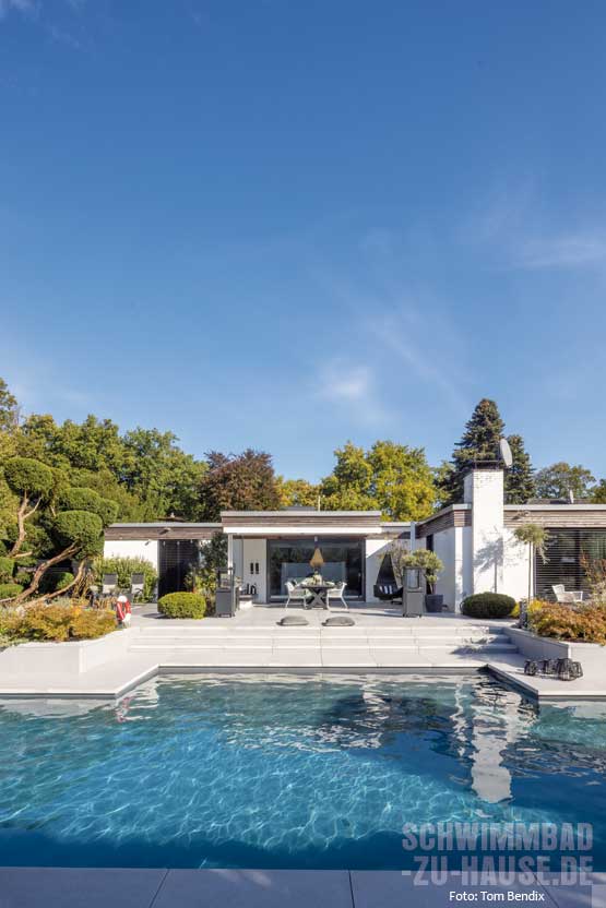 Inspiriert wurden sie durch das Objekt eines Bekannten, der ebenfalls einen Pool besitzt. Das Paar war von dessen Schwimmanlage sehr beeindruckt, sodass sie sich entschieden, denselben Gartenarchitekten und Schwimmbadbauer für ihr eigenes Projekt zu engagieren.