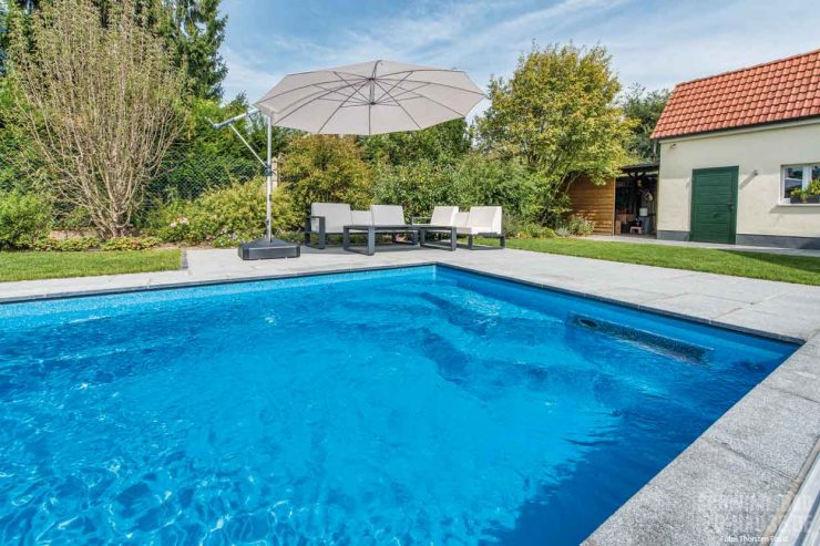 Zeit ist eine faszinierende Größe – und heutzutage ein wahres Luxusgut. Dass manche Dinge – wie zum Beispiel eine Wellness-Oase im eigenen Garten – manchmal etwas mehr Zeit brauchen, das Ergebnis dann aber umso zufriedenstellender ist, zeigt uns dieses Pool-Projekt. Das Wohnhaus der Bauherren ist schon lange Zeit in Besitz der Familie: Erbaut im Jahr 1955 mit kleinem Nutzgarten, 2012 nach den neusten energetischen Bestimmungen renoviert und jetzt ganz frisch mit einem privaten Pool hinter dem Haus ausgestattet. „Bei der Renovierung vor einigen Jahren kam bei uns das erste Mal der Wunsch nach einem Schwimmbad auf“, erzählt die Bauherrin. Leider war das zur Verfügung stehende Grundstück bis dato nicht groß genug. Als dann 2014 das Nachbargrundstück zum Verkauf angeboten wurde, schlug das Ehepaar aus dem Raum Frankfurt gleich zu. Nun hieß es endlich: Freiraum für die Gestaltung eines grünen Wohlfühl-Paradieses inklusive Pool auf satten 400 Quadratmeter.