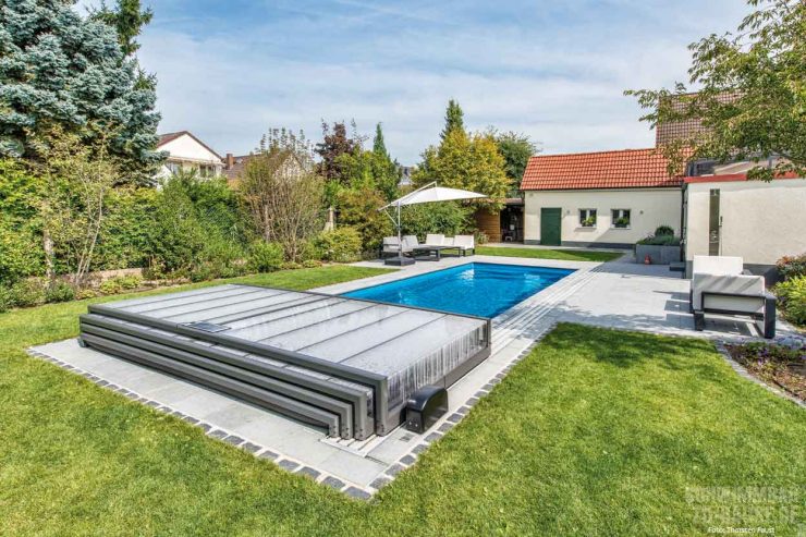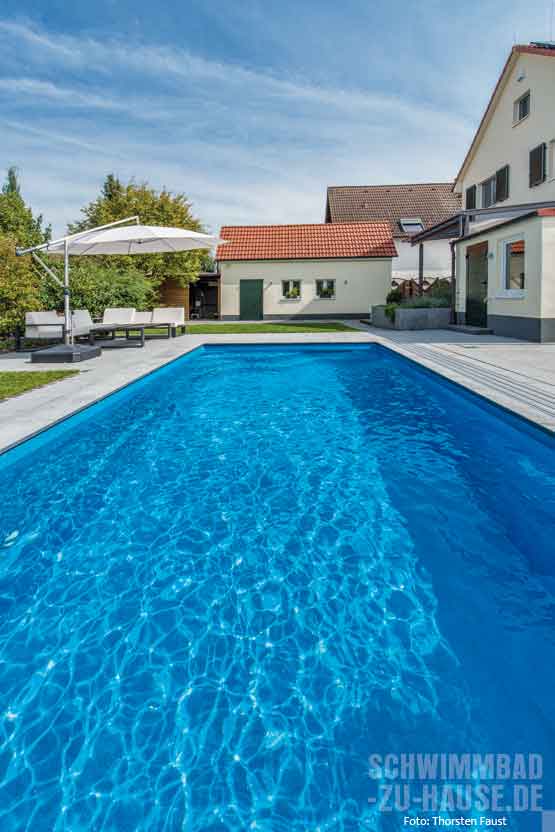 Nach zwei Jahren eigener intensiver Planung freuen sich diese Bauherren aus dem Raum Frankfurt jetzt über eine Relax-Oase, die genau auf sie zugeschnitten ist. Möglichst wenig Arbeitsaufwand und in Konsequenz mehr Zeit zum Schwimmen und Pool genießen war oberste Priorität bei diesem Outdoor-Becken mit Überdachung.