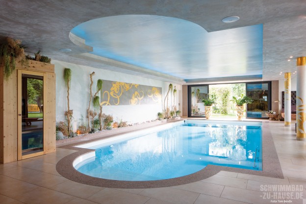 Ein vielbeschäftigtes Unternehmerpaar aus Niederbayern wünschte sich nichts sehnlicher als eine Entspannungswelt daheim, die sie das ganze Jahr über nutzen können. Mithilfe von Poolprofis wurde der Traum von der privaten Wellnessoase erfüllt und zügig Realität. Jetzt können sich die Bauherren tagtäglich und ohne Zeitverlust von den Strapazen des intensiven Arbeitslebens erholen – denn im unteren Geschoss stehen Pool, Sauna, Whirlpool, Infrarot und Dampfbad jederzeit bereit.