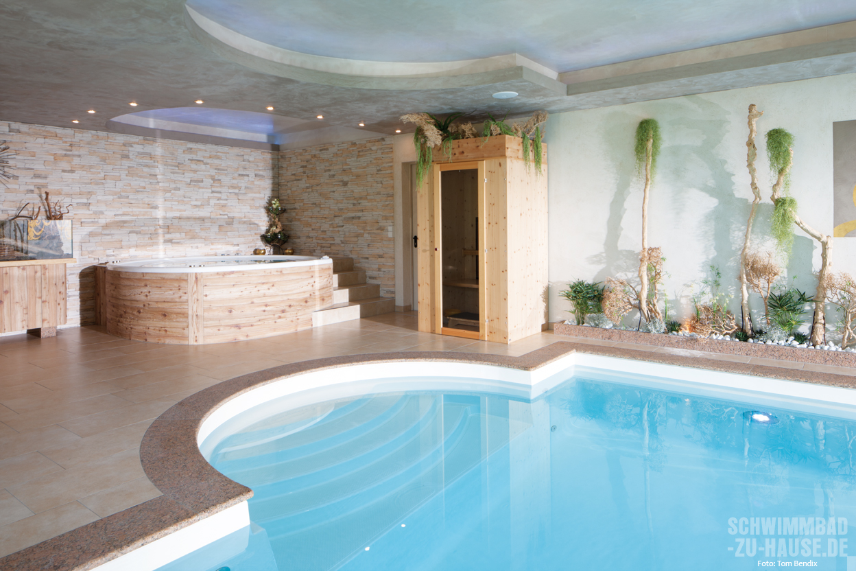 Ein vielbeschäftigtes Unternehmerpaar aus Niederbayern wünschte sich nichts sehnlicher als eine Entspannungswelt daheim, die sie das ganze Jahr über nutzen können. Mithilfe von Poolprofis wurde der Traum von der privaten Wellnessoase erfüllt und zügig Realität. Jetzt können sich die Bauherren tagtäglich und ohne Zeitverlust von den Strapazen des intensiven Arbeitslebens erholen – denn im unteren Geschoss stehen Pool, Sauna, Whirlpool, Infrarot und Dampfbad jederzeit bereit.