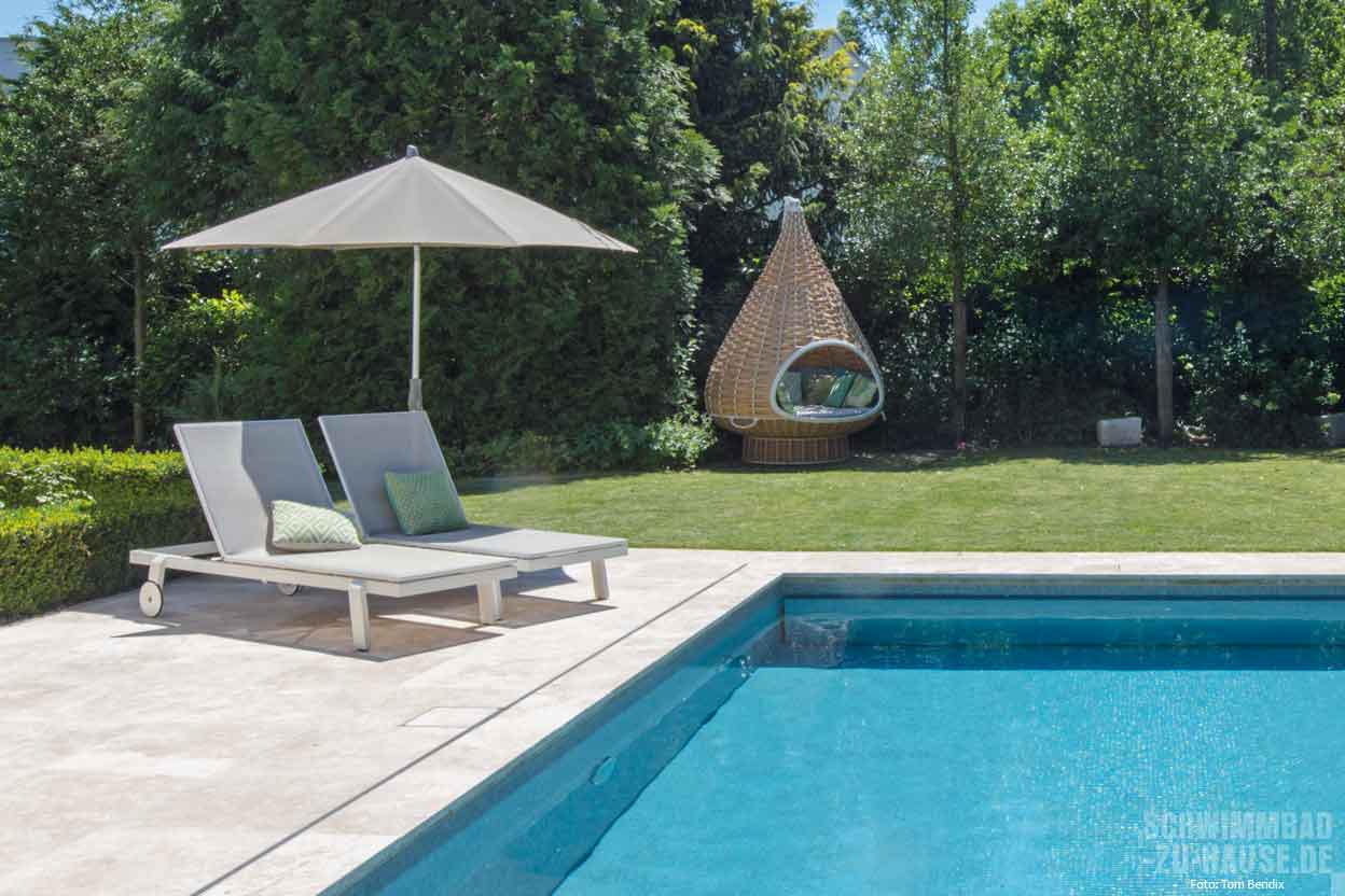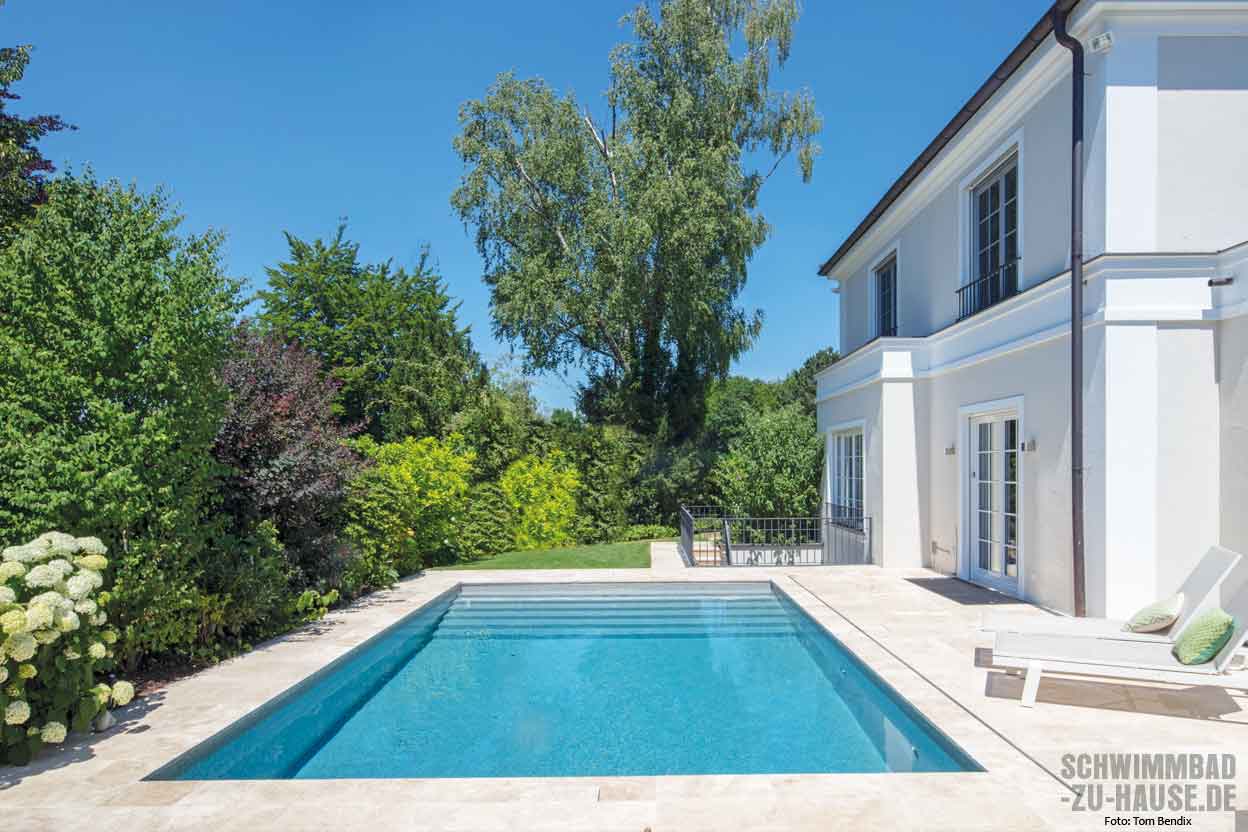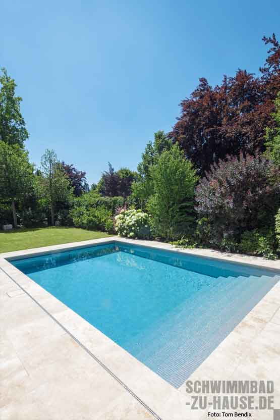 Für die Kinder dieser Bauherren aus Grünwald bei München gab es einen großen Herzenswunsch: das eigene Spaßbad im Garten. Gemeinsam entschied sich die Familie für einen Pool nach Maß mit feinen Mosaiksteinchen, bei dem jedes Detail zu hundert Prozent den individuellen Vorstellungen der Bauherren gerecht wird. Wichtig hierbei: kristallklares und beheizbares Wasser.