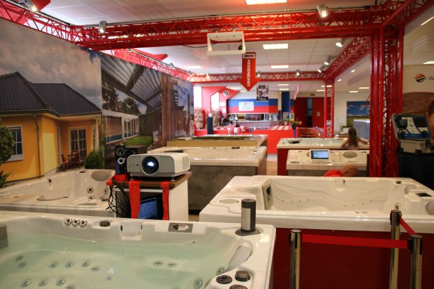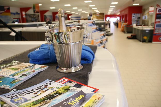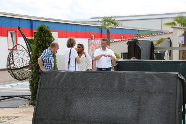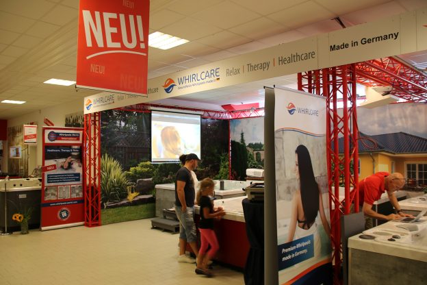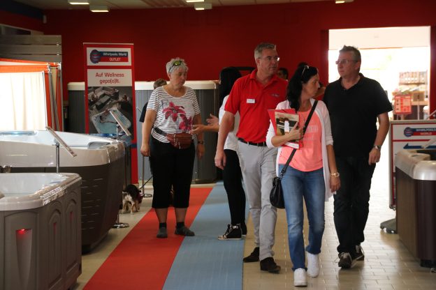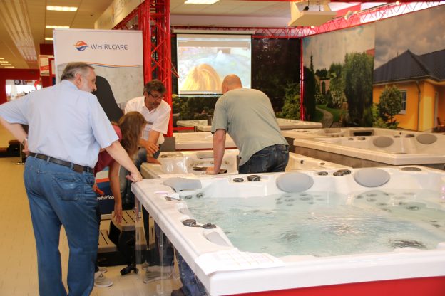 Otmar Knoll und Bertram Krainz führten gemeinsam mit ihren Mitarbeitern die interessierten Besucher durch die gesamte Ausstellung. Besonders lange hielten sich viele der Wellnesshungrigen Baden-Württemberger vor allem im Bereich der neuen Whirlcare-Whirlpools auf. Verständlich, denn bei der neuen Hausmarke von Whirlpools World wird vor allem der Gesundheits- und Therapieaspekt in Vordergrund gestellt.