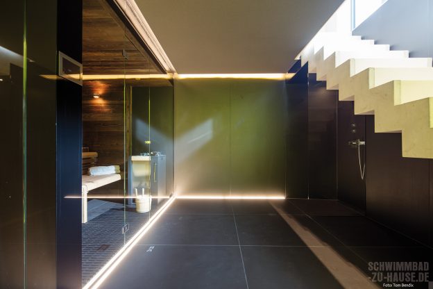 Genau diesem exklusiven Ansatz folgte das Ehepaar Schmidt aus Hamburg (Name und Ort von der Redaktion geändert). Und so standen nach dem Umzug in das neue Anwesen an erster Stelle der Sport und die Regeneration. Für die Bewegung sollte neben dem im alten Haus bereits erprobten Pool auch ein klassischer Fitnessraum sorgen und eine Sauna zudem die körperliche Erneuerung garantieren.