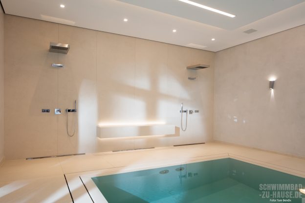 Aus organisatorischer Sicht war es der Bauherrenfamilie vor allem wichtig, dass sie sich auf die Kompetenz erfahrener Wellness-Profis verlassen kann, die autark und schnell das Bauprojekt umsetzen. Darüber hinaus sollten der Pool und die Sauna harmonisch in das Gebäude integriert werden, ohne die Gesamtarchitektur des Hauses zu stören. Nach einer intensiven Recherche fand das Hamburger Ehepaar Schmidt einige schöne Referenzanlagen der Firma Hesselbach, die als Vorlage dienen sollten. Kurzer Zeit später schickte man dann eine schriftliche Anfrage an die Pool-Profis aus Remscheid.