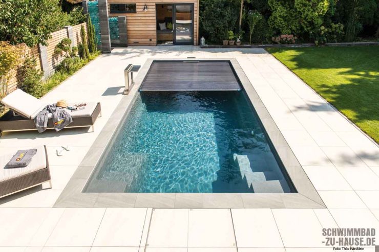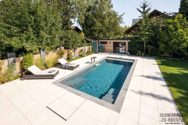 „Wir sind mehr als zufrieden mit unserem eigenen Entspannungsparadies direkt im Garten hinter dem Haus“, schwärmen die Bauherren. „Selbst die handwerkliche Herausforderung, die Abdeckung der Gegenstromanlage genau dem Fliesenspiegel anzupassen, gelang den Poolprofis, sodass wir uns jetzt zurücklehnen und das eigene Schwimmbad gemeinsam mit den Kindern in vollen Zügen genießen können.“