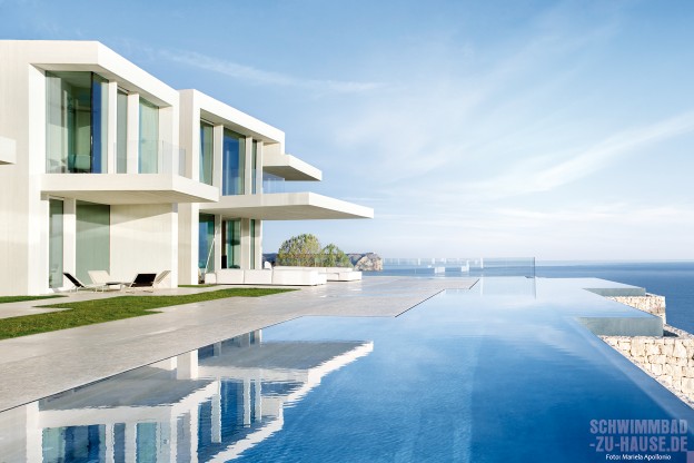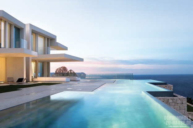 Wellness steht nicht nur für Gesundheit, sondern auch für Schönheit und damit für das Emotionale, Subjektive und nicht Messbare. Wer also nach Inspirationsquellen für Entspannungskonzepte sucht, sollte ab und zu bewusst auf Bodenhaftung verzichten. Diese Kriterien werden unserer Meinung nach perfekt vom Casa Sardinera erfüllt. Denn das auf einer Hügelspitze der Steilküste Cala Blanca gelegene Anwesen bietet nicht nur einen atemberaubenden Blick auf das Mittelmeer mit türkisblauem Wasser, sondern überrascht auch im Inneren des Anwesens mit einem zauberhaften Wasserspiel der besonderen Art.