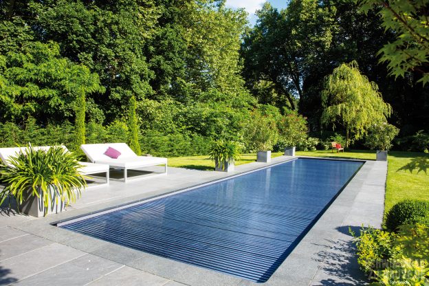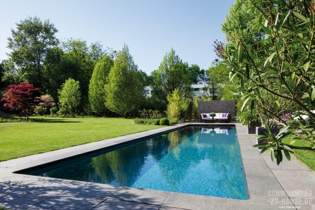Ein weit gereister Geschäftsmann aus Potsdam hatte eine klare Vorstellung von der Gestaltung seines neuen Gartens, in dessen Zentrum ein Designpool entstehen sollte. Mithilfe erfahrener und kreativer Poolprofis wurde vor den Toren der Hauptstadt eine Wellnessanlage realisiert, die den immer stärker werdenden Trend nach geradlinigen, langen und schmalen Pools mit dunkleren Folienfarben wider-spiegelt. Abgerundet wird das Trendsetter-Becken durch eine vollautomatisierte und energieeffiziente Technik.