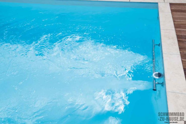 Unabdingbar war für den Bauherren eine leistungsstarke Gegenstromanlage für das tägliche Schwimmtraining. „Für meine Gesundheit, aber auch für den Geist ist Sport die beste Medizin. Beim Schwimmen kann ich abschalten und die Sorgen des Alltags hinter mir lassen“, schwärmt er. Mit der an der Stirnseite des Beckens in die Wand integrierten Gegenstromanlage von Speck Pumpen haben sich Florian Geis und sein Team für das richtige Modell entschieden. Die Anlage ist auf individuelle Bedürfnisse abgestimmt und kann – je nach Ausdauer des Nutzers – die Strömungsstärke variieren.
